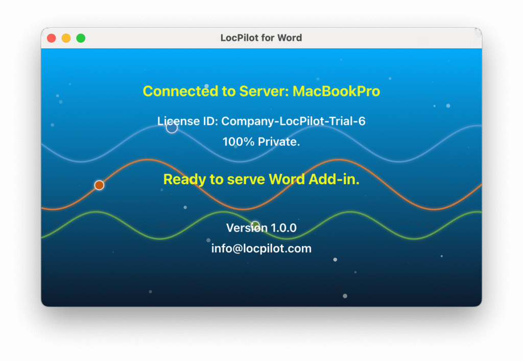 4. After installation, a user can launch LocPilot for Word. It will detect the License Server automatically and runs as shown below: